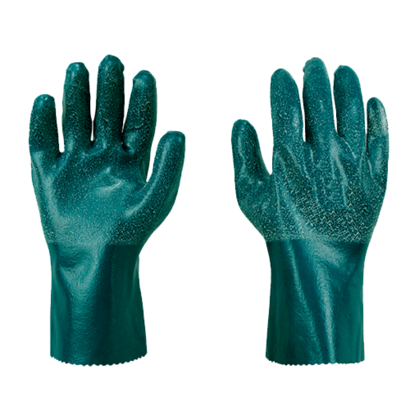 Luva de segurança confeccionada em algodão, revestimento total na face palmar , dorso e punho em borracha nitrílica,