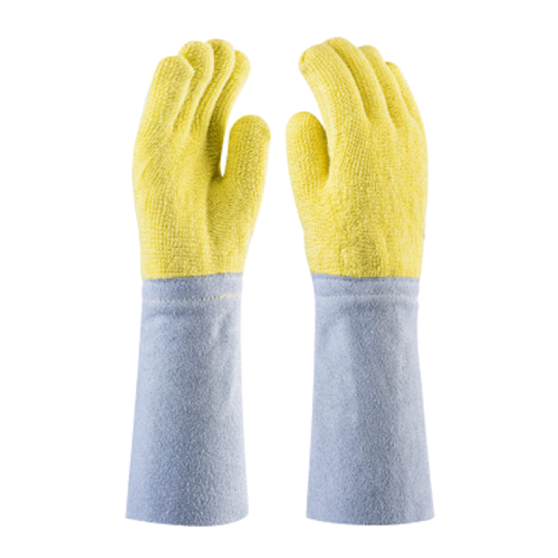 Luva de segurança confeccionada em grafatex de fibra de aramida, forro em lã e punho de raspa ( comprimento do punho 20 cm ),