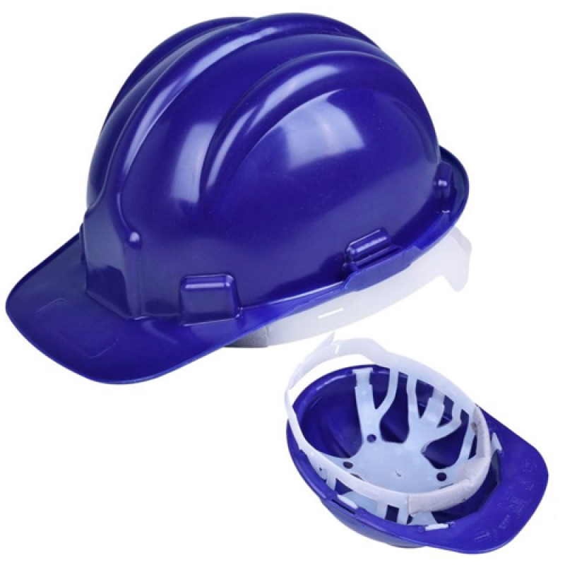 Capacete de segurança com aba frontal, injetado em polietileno de alta densidade. Suspensão / carneira plástica com tira absorvente de suor. Possui fendas laterais para acoplar acessórios.