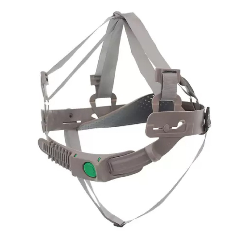 Suspensão / carneira injetada em plástico, com peça absorvente de suor e espuma de poliéster e coroa composta de duas cintas cruzadas montadas em quatro clips de plástico e fixadas com uma costura, A regulagem do diâmetro da carneira é feita através de um sistema simples com 4 pontos de fixação tipo cremalheira, possui jugular têxtil fixa a carneira, pode ser utilizada nos capacetes da MSA aba frontal ou aba total.