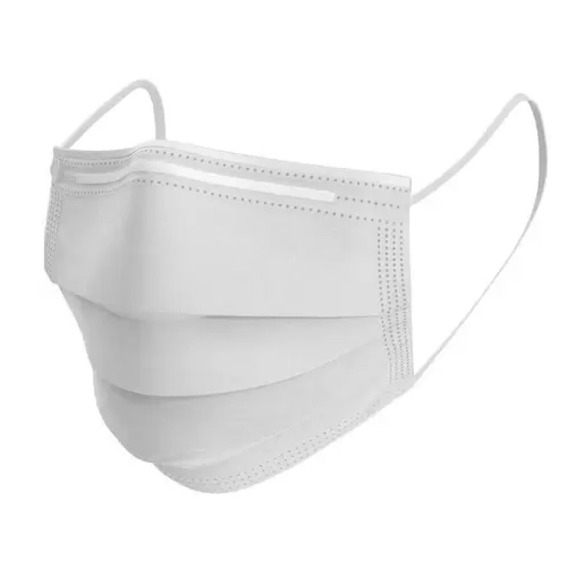 Máscara confeccionada em TNT (Tecido Não Tecido) tripla camada, possui clip nasal e elástico, BFE > 95%.