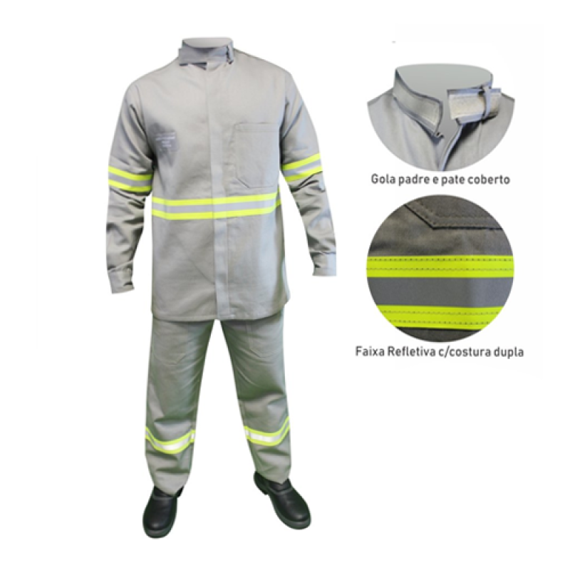 Calça de segurança confeccionada em tecido retardante a chamas (NR10), fabricado pela Companhia de Tecidos Santanense.