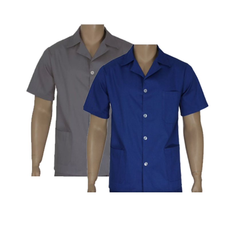 Jaleco manga curta, com 3 bolsos, confeccionado em sarja profissional.