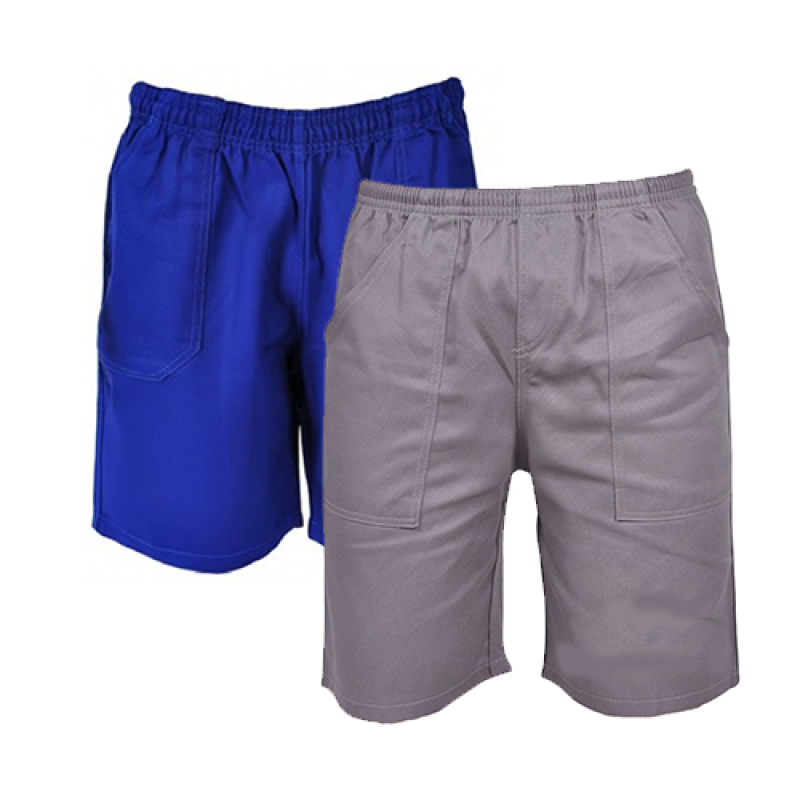 Bermuda com elástico e cordão, com 3 bolsos, confeccionada em brim pessado profissional.costura reforçada, reforço nos bolsos e entre as pernas.