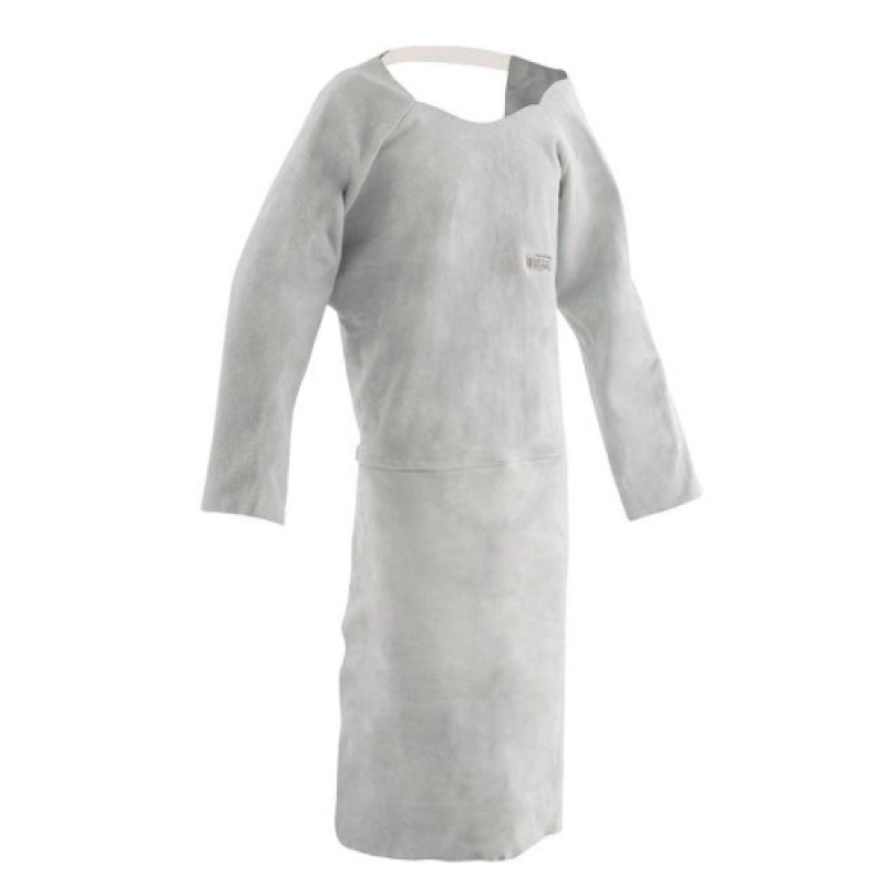 Avental mod. Barbeiro em raspa curtida ao cromo , com mangas e ombros do mesmo material , possui elástico nas costas para fixação. Comprimento 1 mt.
