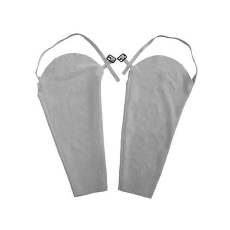 Manga de segurança confeccionada em couro de raspa curtida ao cromo , com alça de sustentação do mesmo material , com ajuste no ombro.