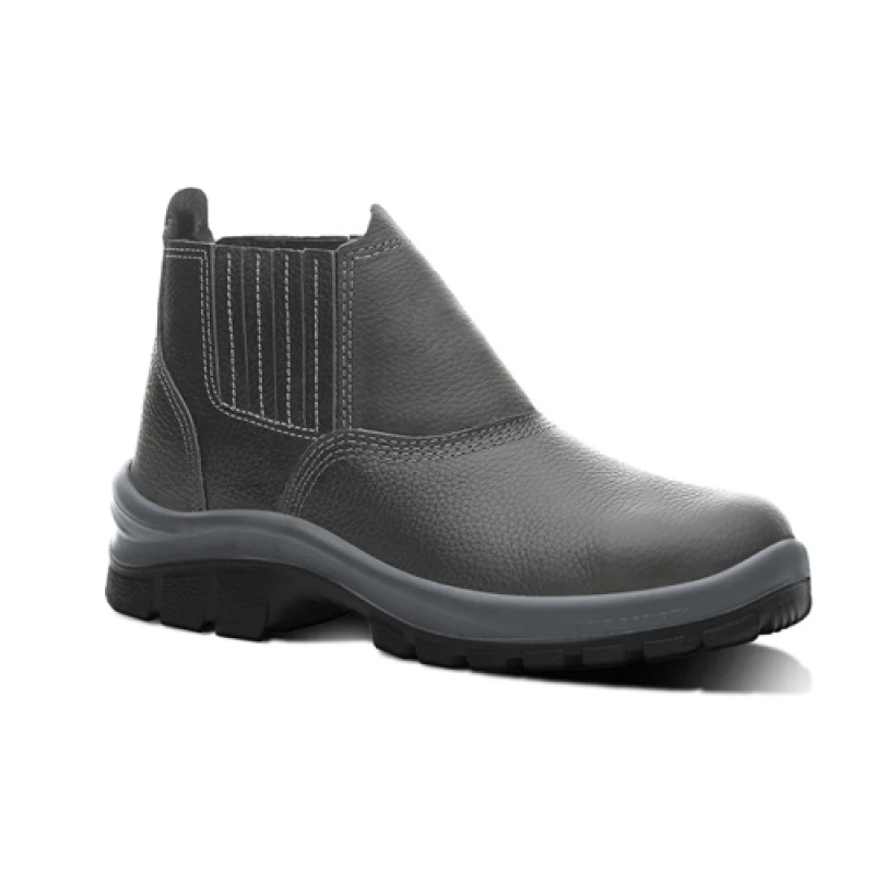 Botina solado bidensidade modelo elástico lateral, couro relax lixado, possui biqueira de pvc, palmilha antibacteriana em eva.